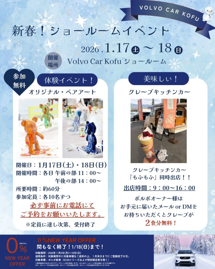 先日ご案内した1月ショールームイベント、『ボルボオリジナルベアアート』の詳細です!