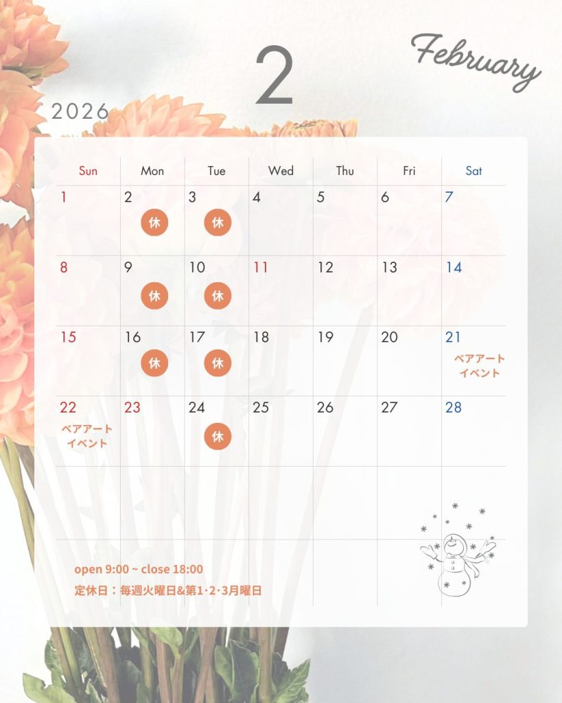 2月定休日のお知らせです🍫